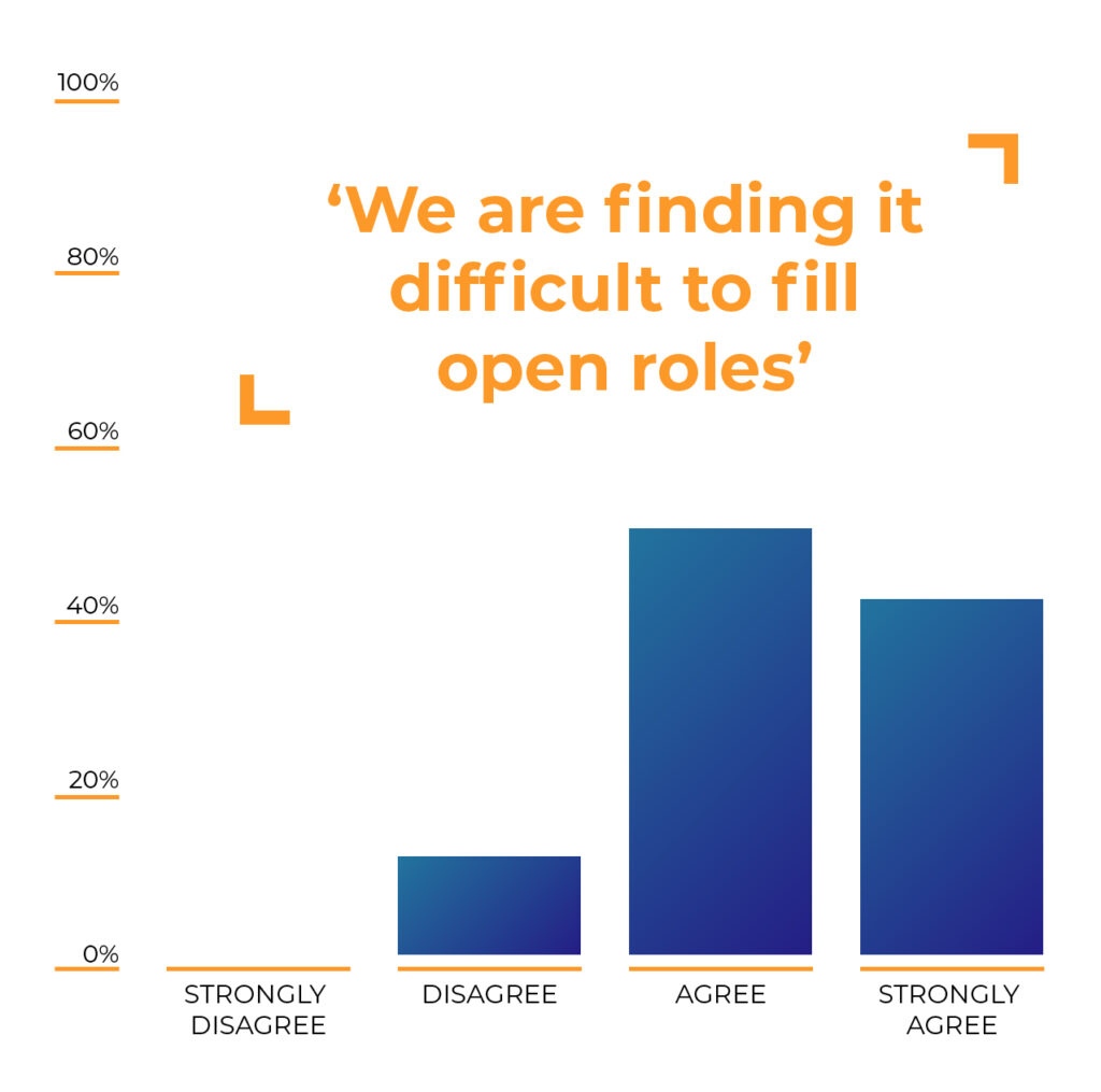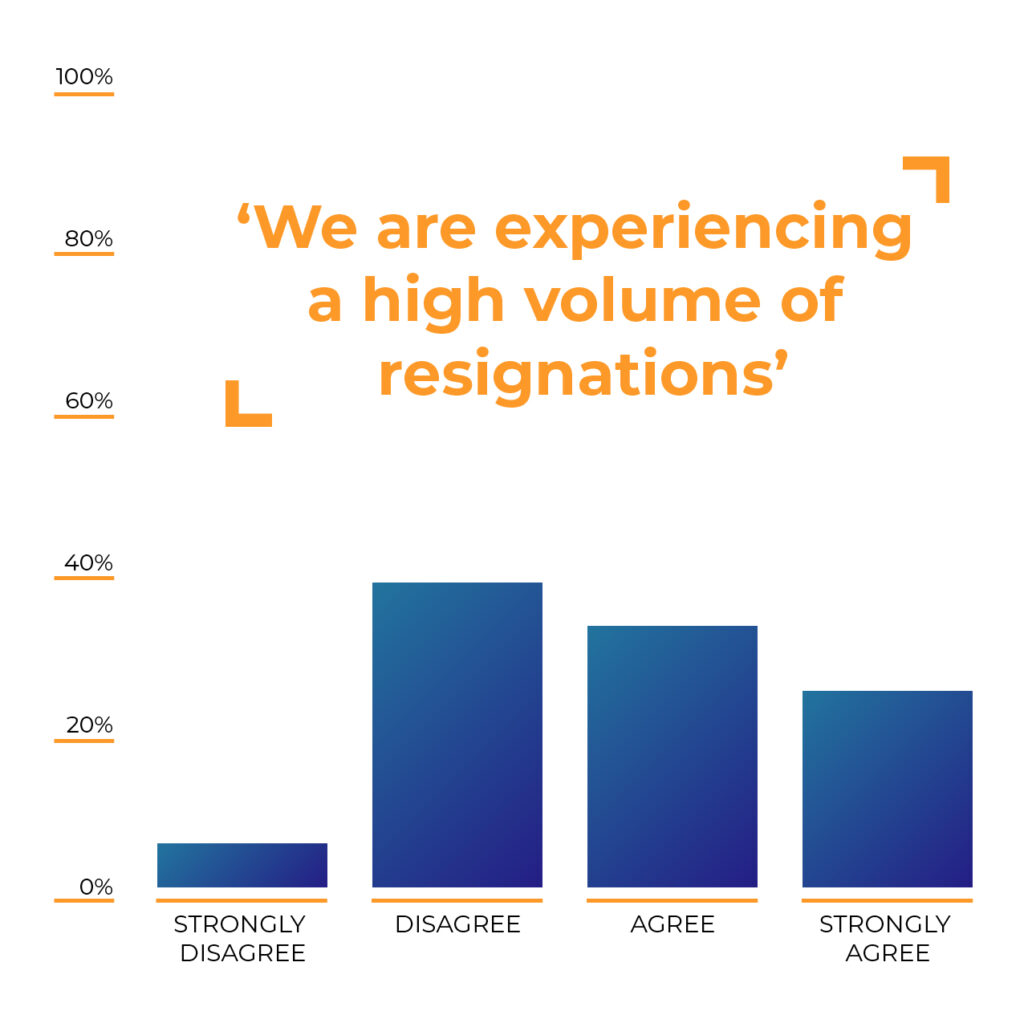 Our own survey of 40 Australian companies, shows that the exodus of staff is playing out as anticipated. More than half the respondents said that they are experiencing a high volume of resignations – and 9 in 10 said they are struggling to fill roles: