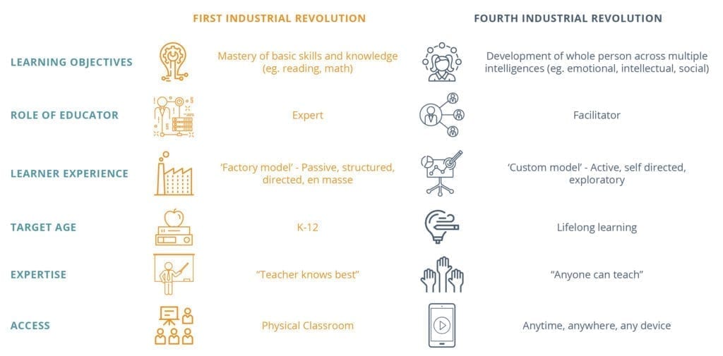 In the Fourth Industrial Revolution, we need to redefine learning objectives and learn how to deliver content anytime, anywhere, to promote the idea of shared learning and a mindset of lifelong learning.